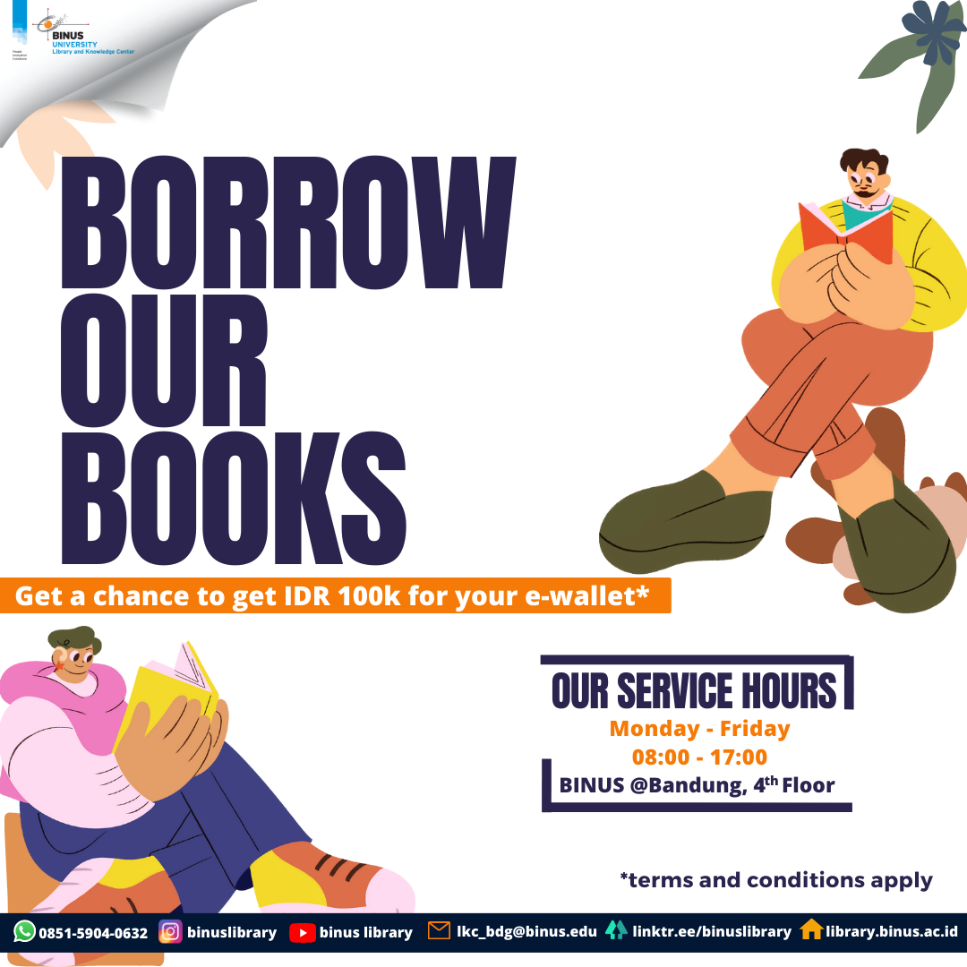 Halo Binusian BINUS @Bandung. LKC Bandung bakal bagi-bagi e-wallet sebesar 100k untuk kamu yang rajin meminjam buku. Untuk lebih jelasnya kunjungi: https://linktr.ee/library_bdg. Terima Kasih