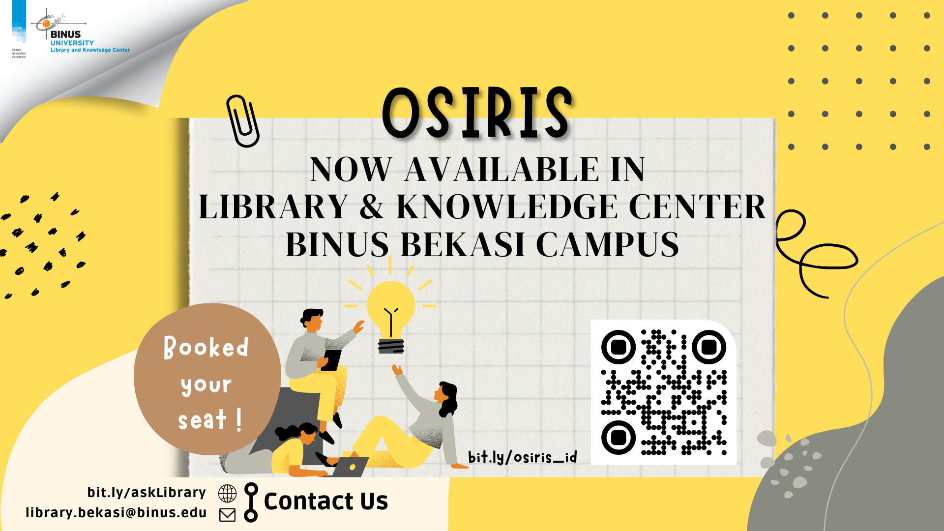 Osiris memiliki informasi tentang perusahaan yang terdaftar, dan perusahaan besar yang tidak terdaftar/dihapus di seluruh dunia. Informasinya sangat detail dan mencakup lebih dari sekedar laporan keuangan. saat ini telah tersedia di LKC BINUS Bekasi Campus, ayo booking ! di : bit.ly/osiris_id