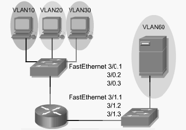 Gambar 2.13 Topologi Fisik Komunikasi Antar VLAN Dengan Trunking dan Media