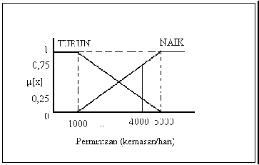 Permintaan; terdiri atas dua himpunan samar, yaitu: NAIK dan TURUN.