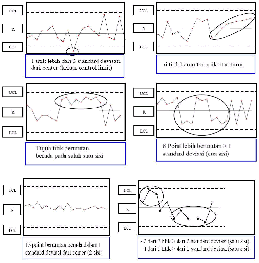 Berikut adalah pola-pola grafik yang menunjukakan ketidakstabilan proses :