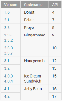 banyak versi, tabel dibawah ini menunjukkan versi Android dan