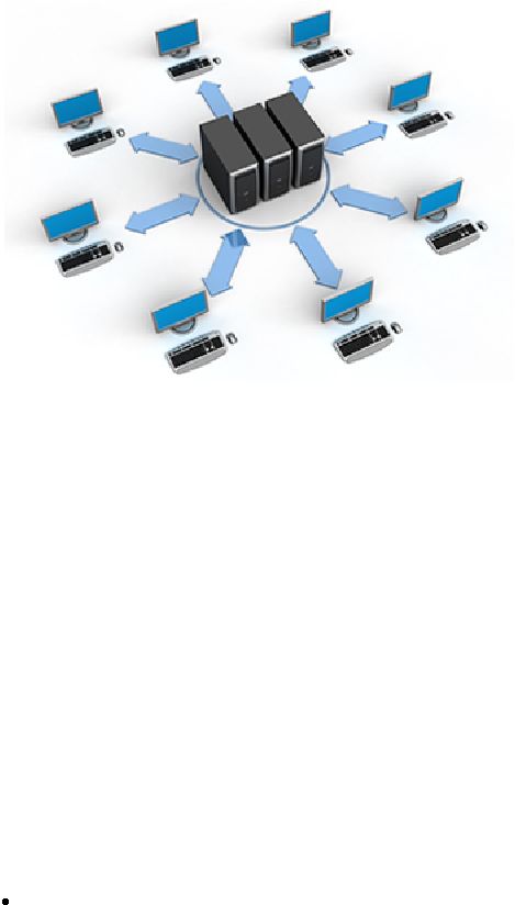hasil prosesnya ke dalam monitor sedangkan semua prosesnya di handle oleh server.