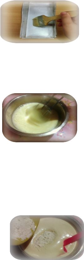 Kocok telur bersama gula pasir, dan cake emulsifier (Tbm) hingga lembut.