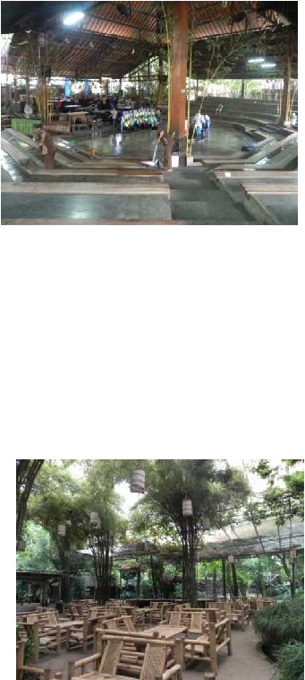 dilengkapi meja- kursi dari bambu. Selain itu juga terdapat panggung