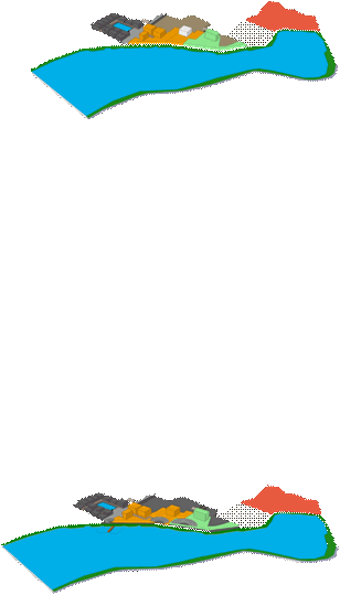 warga mengikuti alur sungai atau danau sebagai tempat mereka tinggal (