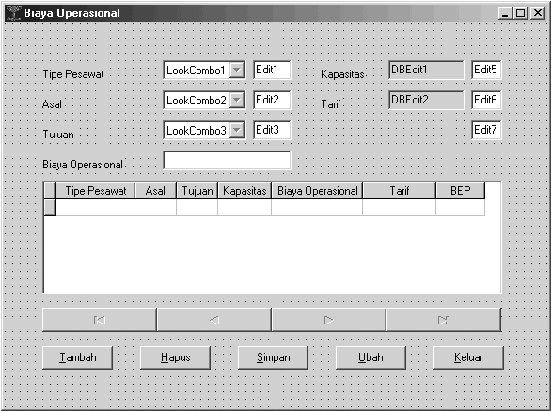 Gambar 5.23 Rancangan Layar Biaya Operasional