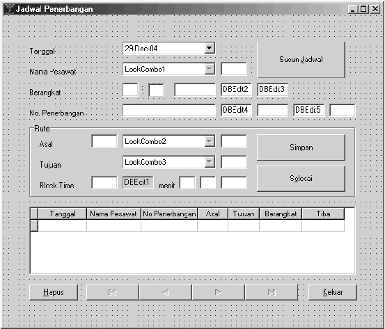 Gambar 5.25 Rancangan Layar Jadwal Penerbangan