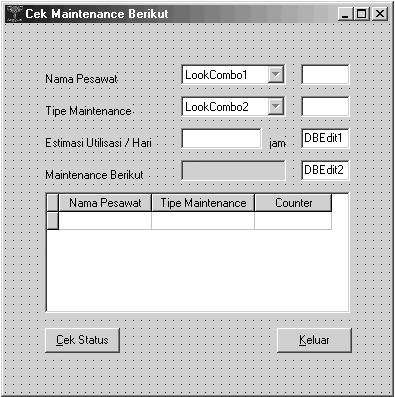 Gambar 5.37 Rancangan Layar Cek Maintenance