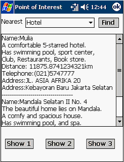 Figure 5.11 Display of POIs List of Nearest Places based Hotel Category