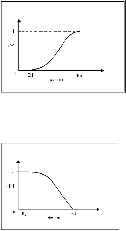 keanggotaan satu, menuju ke sisi kanan dengan nilai keanggotaan nol.