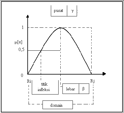 pada pusat dengan domain (?), dan lebar kurva (ß).
