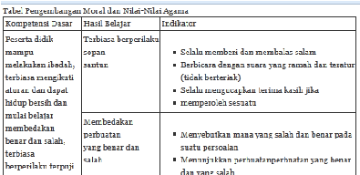 moral dan nilai-nilai agama yang perlu dikembangkan pada jenjang