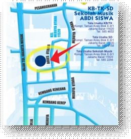 Sekolah musik Abdi Siswa berlokasi di Perumahan Taman Aries Blok E-