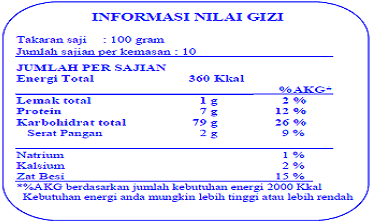 Gambar 2.8 Informasi Nilai Gizi Modified Sorghum Flour Pada Kemasan