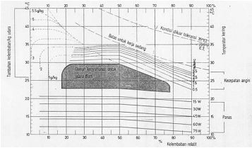 Gambar 2.2 Diagram Kenyamanan sebagai Fungsi dari Temperatur, Kelembaban dan