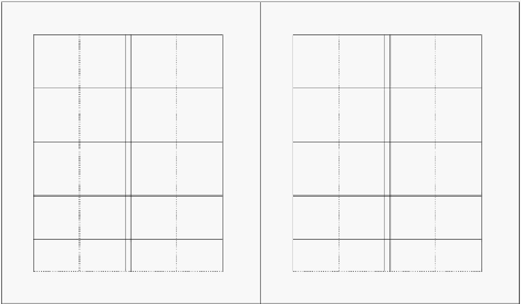 halaman spread dengan 2 kolom yang dibantu oleh 2 garis bantu.