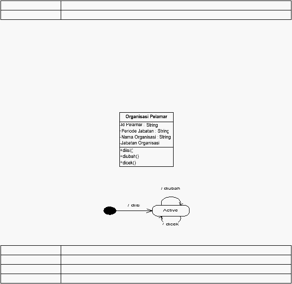 organisasi. Event pada class organisasi pelamar adalah diisi, diubah, dicek.