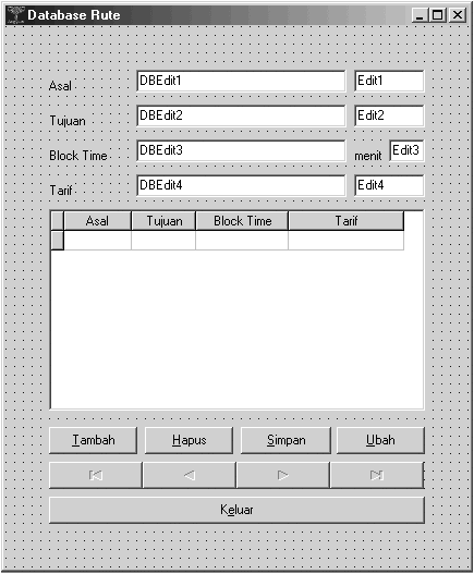 Tabel Rute. Untuk tombol